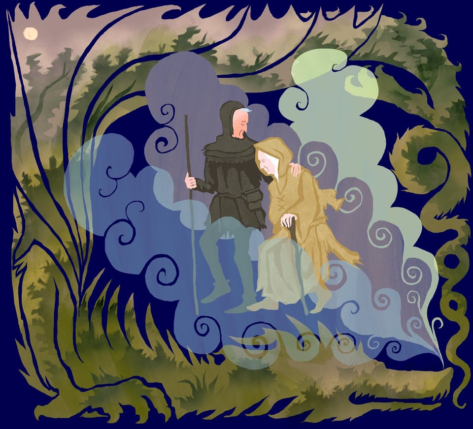 From there, we enter this dark age alongside an old couple that goes on a journey. But the narrative quickly becomes unruly, as the story’s past and present entwine like a double-helix.