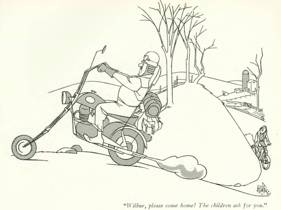 Pg. 39: Well-written caption, but a “what if animals did human things” gag has to be really special to amuse me.