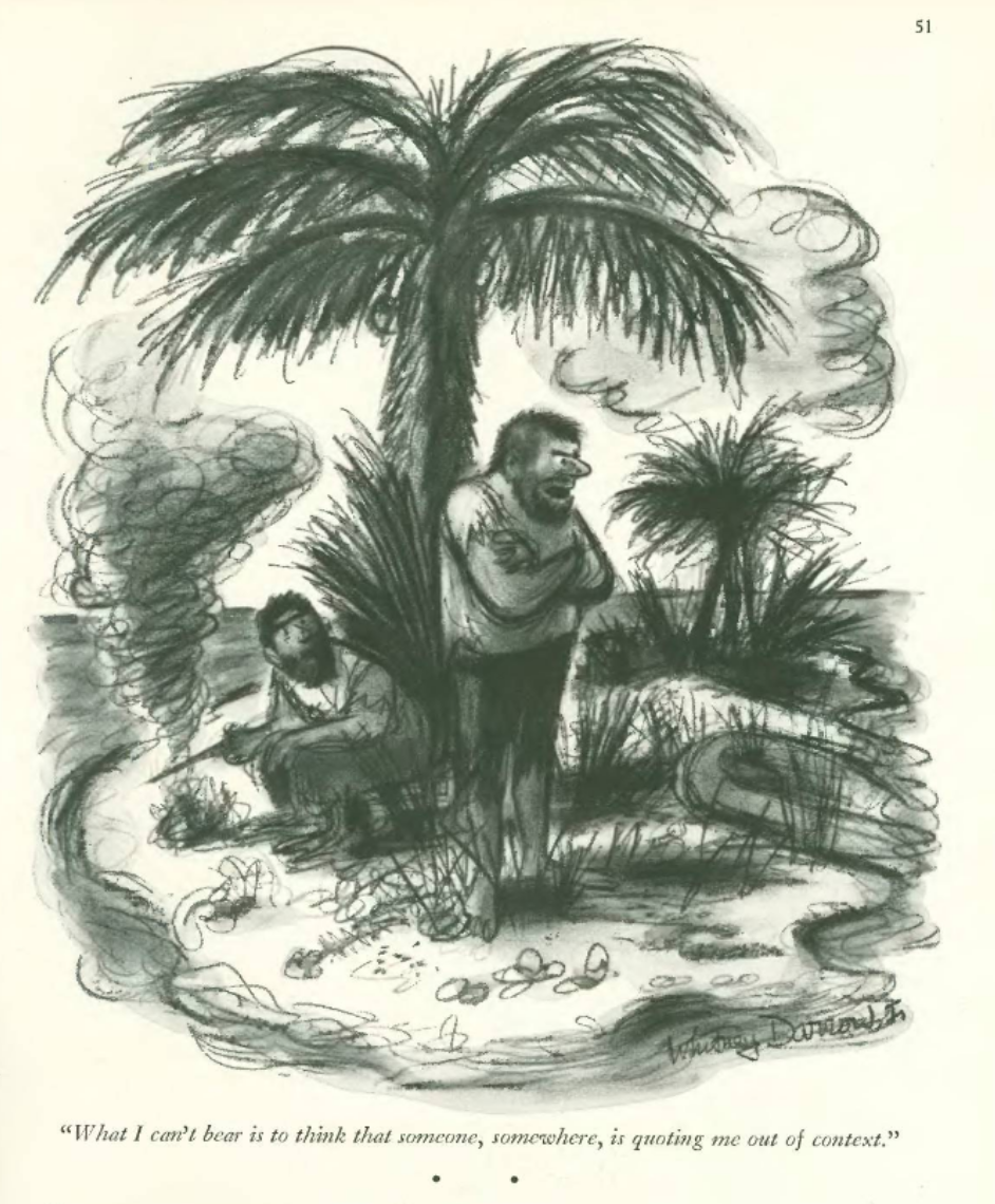 Pg. 92: How many men can you add to the desert island before it’s no longer recognizably the same gag?